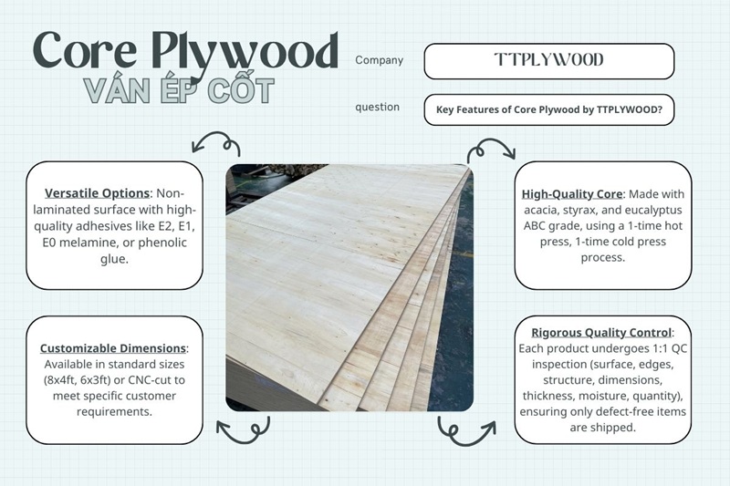 - Flexible Solutions: Whether you need high-strength LVL wood or cost-effective Core Plywood, Trường Thịnh provides versatile options to suit all packaging and construction requirements.